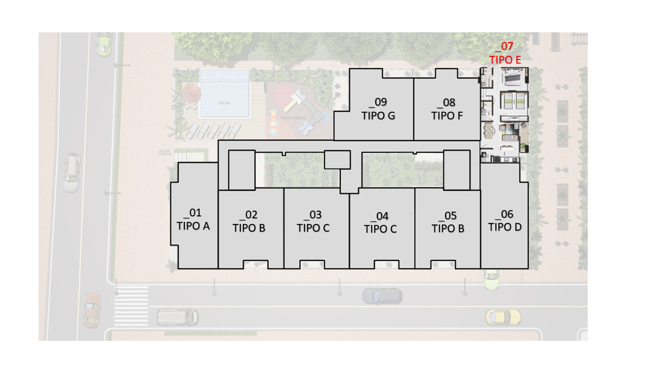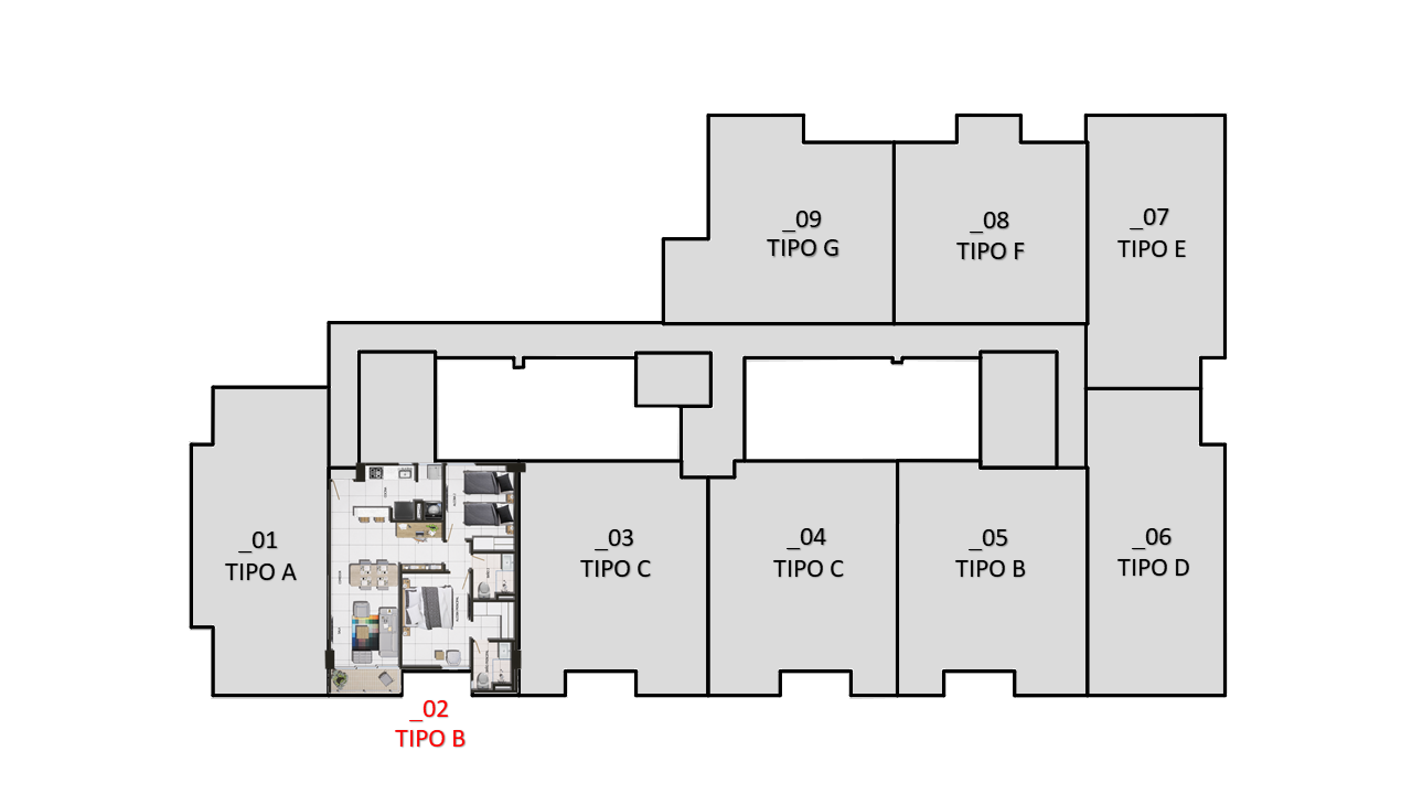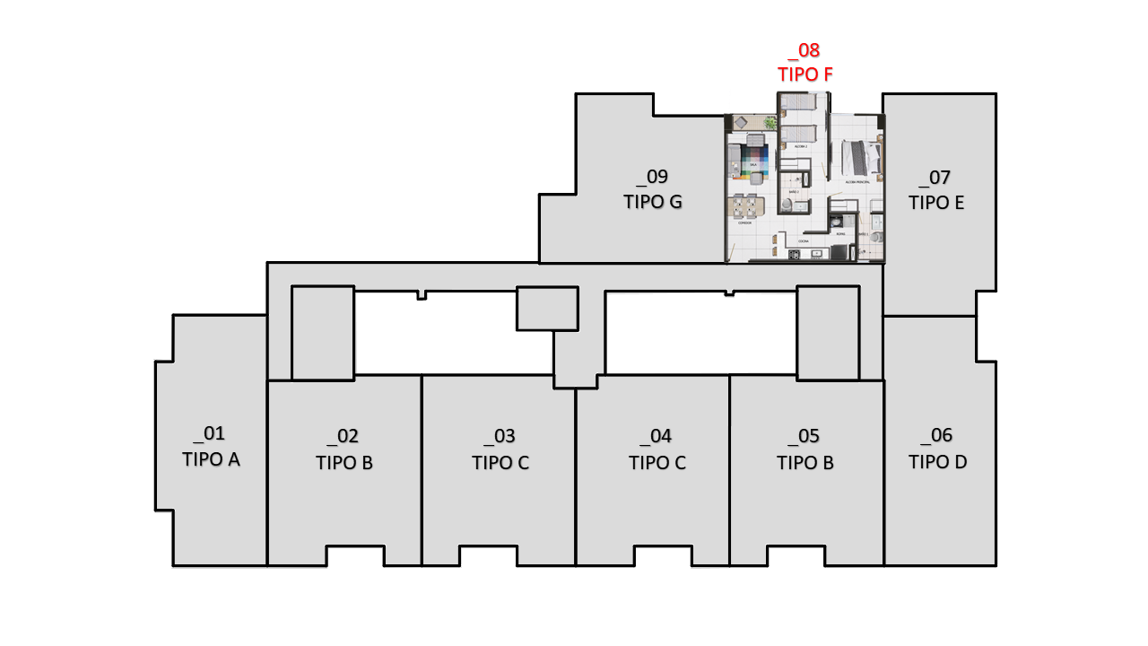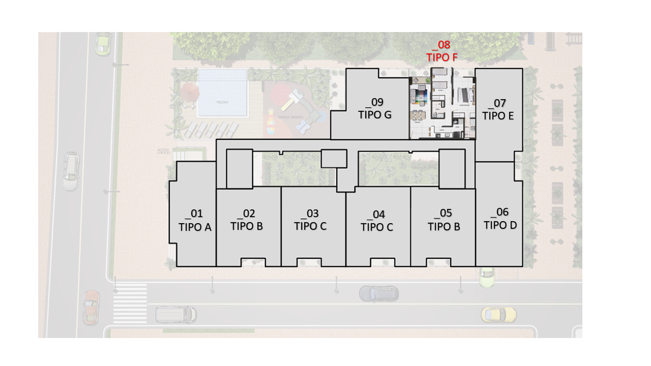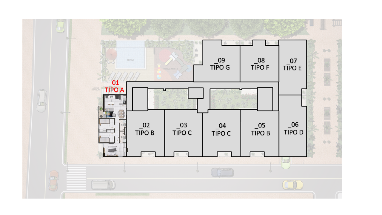El proyecto consta de 1 torres de apartamentos con cuatro pisos con 7 apartamentos en primer piso 9 apartamentos desde el piso 2 al 4 para un total de 34 apartamentos con 35 parqueaderos privados ubicados en sótano.